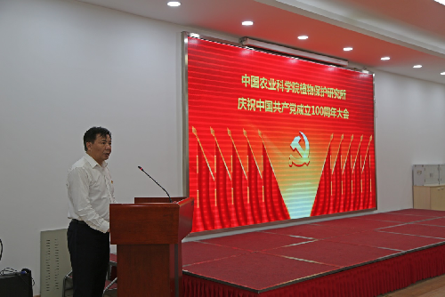 为庆祝党的百年华诞,深入推进党史学习教育,6月29日,植保所隆重召开庆祝中国共产党成立100周年大会,表彰“两优一先”先进典型,组织开展“学习党史守初心 砥砺前行担使命”演讲比赛。大会由党委书记罗长富主持,全所在职职工党员、博士后党员、离退休职工党员和研究生党员代表参加了会议。
