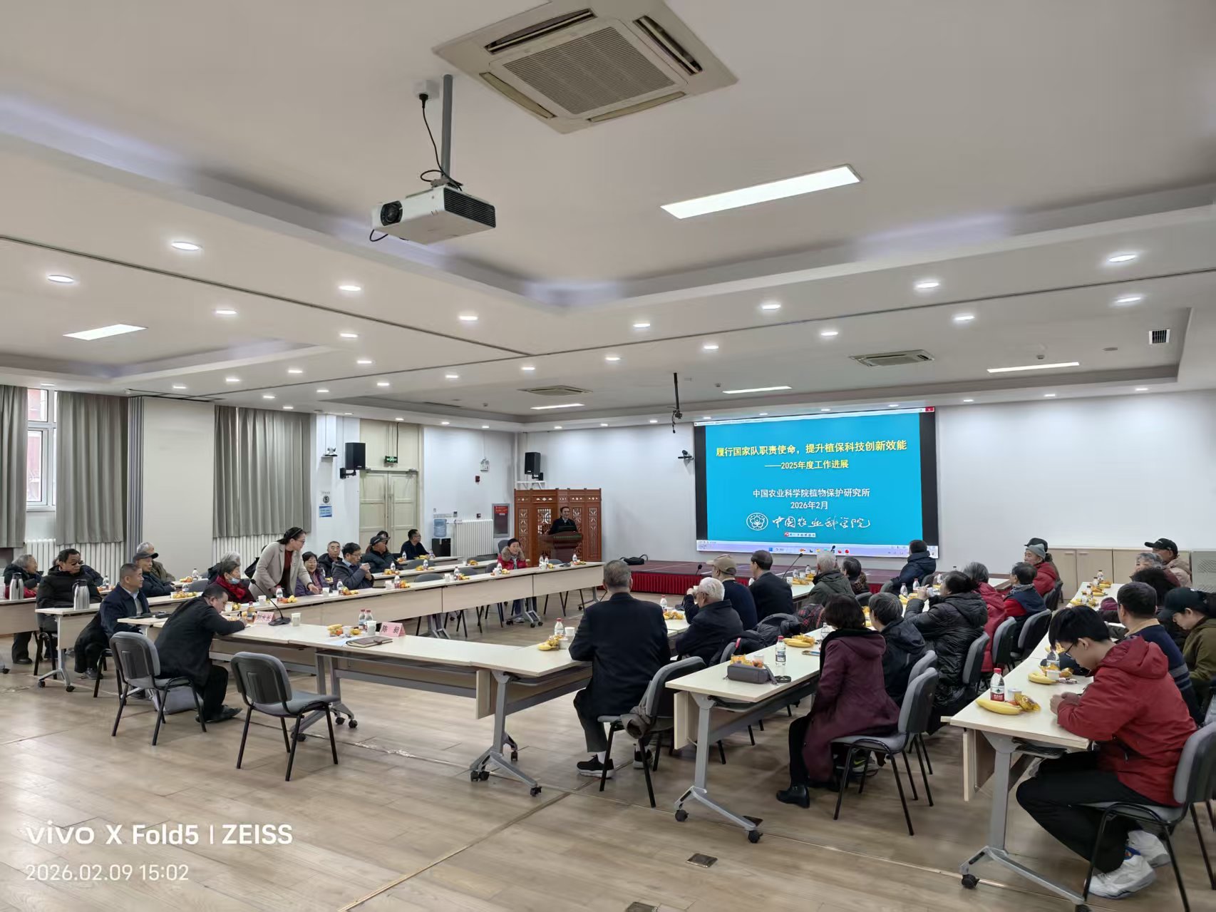 马启新程,辞旧迎新,2月9日下午,植保所召开2026年退休职工新春团拜会。副所长、党委委员陈昶,纪委书记刘水长,相关管理部门负责人及退休职工欢聚一堂,共贺新春佳节,共绘发展蓝图。刘水长主持团拜会。