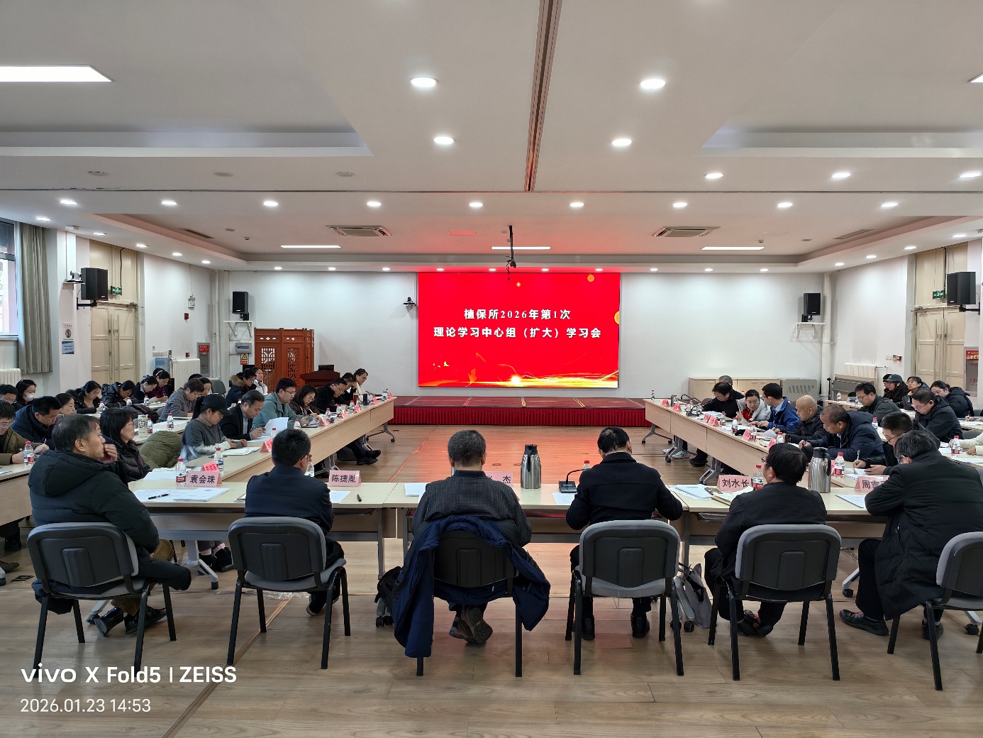 1月23日,植保所召开2026年第1次理论学习中心组(扩大)学习会。围绕学习贯彻习近平总书记在党的二十届四中全会和二十届中央纪委五次全会上的重要讲话精神,以及对“三农”工作的重要指示精神,开展集中学习和交流研讨。副所长陈昶主持会议并做总结讲话,所领导班子成员、党委委员、纪委委员、处级干部、党总支及党支部书记、支部委员参加会议。