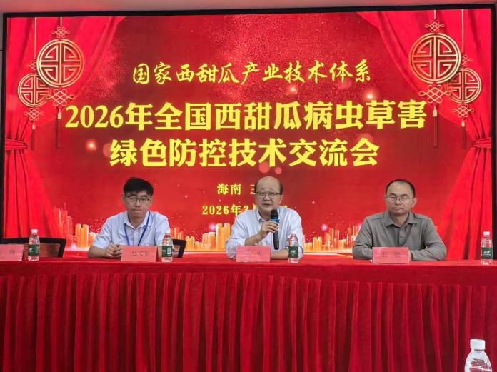 3月27日至29日,由中国农业科学院植物保护研究所、国家西甜瓜产业技术体系病虫草害防控研究室主办,海南省农业科学院蔬菜研究所、产业技术体系三亚综合试验站、三亚中国检科院生物安全中心承办的“2026年全国西甜瓜病虫草害绿色防控技术交流会”在海南崖州顺利举行。国家西甜瓜产业技术体系首席科学家许勇、中国农业科学院国家南繁研究院副院长周忠实、海南省农业科学院蔬菜所所长王敏、三亚中国检科院生物安全中心主任赵文军,以及中国农业科学院植物保护研究所研究员赵廷昌、关巍、陈景超等出席开幕式。来自全国科研院所、高校、农技推广部门及企业的专家学者、技术骨干齐聚一堂,围绕西甜瓜主要病虫草害的绿色防控技术展开深入交流与研讨。
