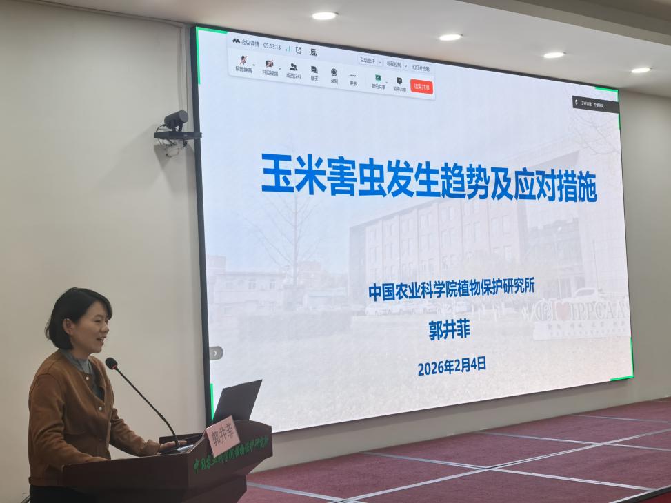 郭井菲副研究员在《玉米害虫发生趋势及应对措施》报告中,全面分析了我国玉米主要害虫的发生态势,并提出相应的监测与综合治理策略。
