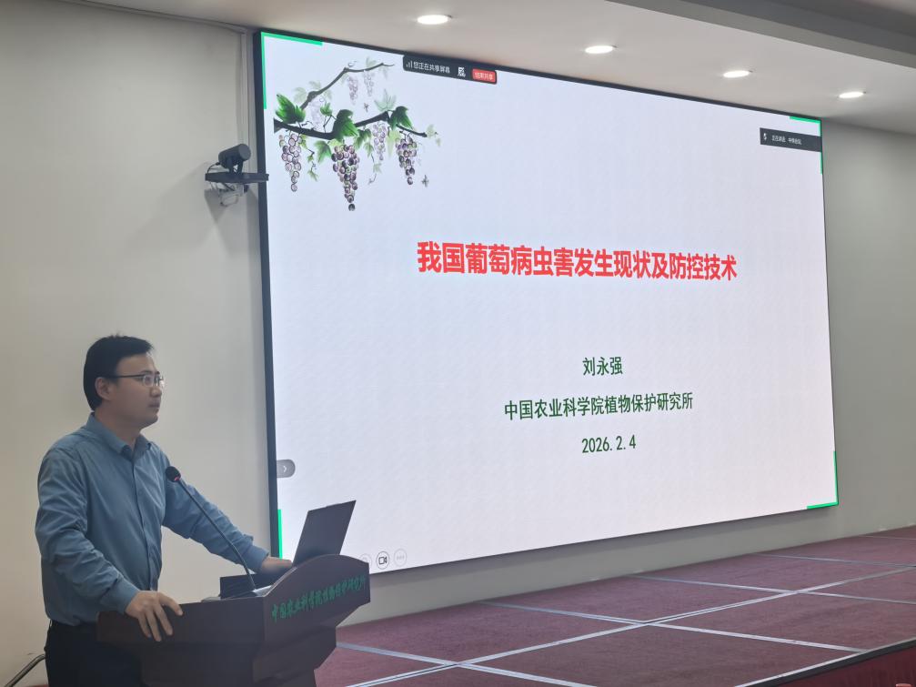 刘永强研究员在《我国葡萄病虫害发生规律与防控技术》报告中,系统阐述了我国葡萄种植概况、主要病虫害发生规律及绿色防控技术体系。