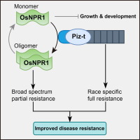 Plants have developed a set of defense mechanisms against pathogen infection . Basal immunity provides broad-spectrum resistance (BSR) but weak resistance to various pathogens, while resistance (R) gene-mediated effector-triggered immunity (ETI) confers strong but race-specific resistance to limited pathogens. Salicylic acid (SA) is a key plant immune hormone, and its receptor, the nonexpressor of pathogenesis-related genes 1 (NPR1), is a positive regulator of plant basal immunity . Although overexpression of NPR1 enhances immunity in various crops, these overexpression plants showed growth defects and yield losses , posing challenges for the application of NPR1 in crop improvement. R gene-mediated ETI is widely used in molecular breeding. For example, rice R genes Pi9, Piz-t, and Pigm are important breeding resources with BSR to many Magnaporthe oryzae isolates and have been incorporated in elite rice varieties. However, isolates in the paddy field are often a mixed population, and in this complex environment, R gene-mediated resistance often lacks durability and broad-spectrum efficacy. Therefore, how to coordinate the two immune systems becomes a bottleneck in improving crop resistance.