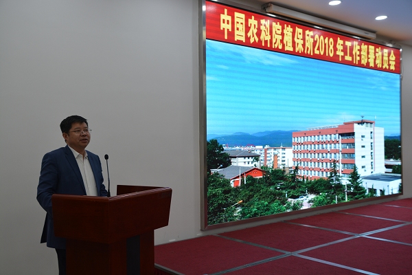 周雪平所长要求全体职工2018年要在党中央的坚强领导下,以习近平新时代中国特色社会主义思想为指引,按照习总书记对我院“三个面向,两个一流,一个整体跃升”目标要求,统一思想,凝心聚力,扎实推进我所科技创新、人才培养、成果转化、国际合作等各项工作,为国家粮食安全和农业可持续发展做出新贡献,在建设世界一流学科和一流院所进程中始终走在全院前列。