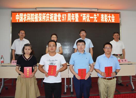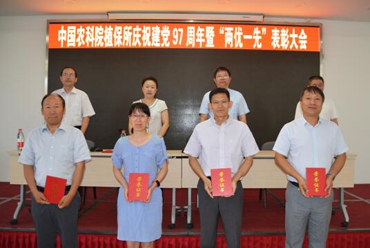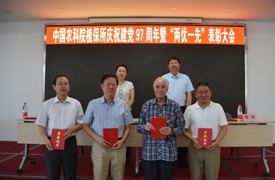 2018年6月28日上午植保所召开庆祝建党97周年大会。为充分发挥先进典型在促进农业科技创新中的引领、示范和带动作用,根据我所“两优一先”评选表彰工作总体部署,结合纪念大会,植保所组织召开2016-2017年度“两优一先”表彰会并举办2018年第一期植保道德讲堂。周雪平所长、李红康书记、邱德文副所长、张杰副所长、沈银书副所长、全体党员、在职职工、离退休职工、博士后和学生代表共计180余人参加会议。李红康书记主持会议。