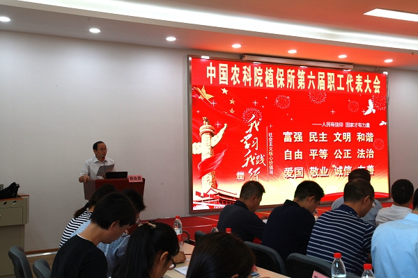 2018年7月4日,植保所召开第六届职工代表大会,41名职代会代表和3名列席代表参加会议,会议听取了所长工作报告,审议通过了研究所三项重要规章制度。