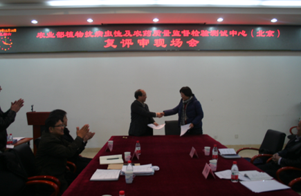 2013年12月12日-14日,由农业部农产品质量安全监管局组织的国家计量认证农业评审专家组,对农业部植物抗病虫性及农药质量监督检验测试中心(北京)进行了农产品质量安全检测机构考核和审查认可及实验室资质认定的现场复查评审。